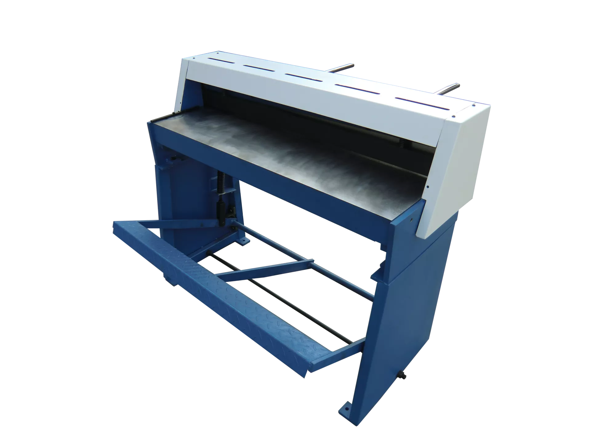 * Quality steel-fabrication construction * Spring loaded material clamp beam * Light duty and cost effective * Adjustable blade gap clearance for thin material * Includes fronts sheet supports and backgauge